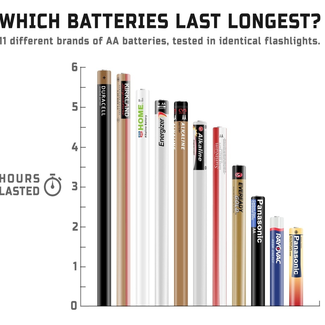 Check out the results of our research: 11 different brands of AA batteries tested in identical flashlights. #Education #School #Research #Text #Facts #Business #Disjunct #Illustration #Desktop #Page #Succession #Progress #Knowledge #Study #Data #Equipment #Vectors #Paper #Instrument #Graphic