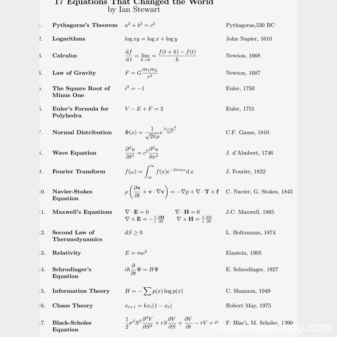 Greetings, fellow Knowledge Ninjas! Today we’ll tiptoe through 17 equations that irreversibly altered the course of history, presented by none other than the mathematical guru, Ian Stewart. Much like ninjas, these obscure and hidden equations have stealthily infiltrated numerous fields and dimensions of our livesπ₯·π. Intricate as calligraphy, they lie at the heart of numerous everyday phenomena such as time, electricity, and the building blocks of our universe. ποΈπ₯
