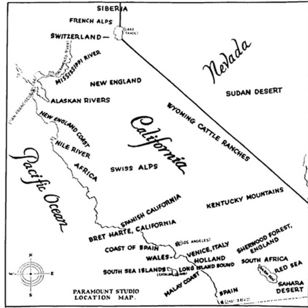 Check out this amazing 1927 Paramount Studio map that outlines potential filming locations in California that best depict international regions! #illustration #margin #graph #outline #graphic #science #vector #facts #education #complex #geography #map #research #chalkout #design #desktop #business #diagram #line #medicine
