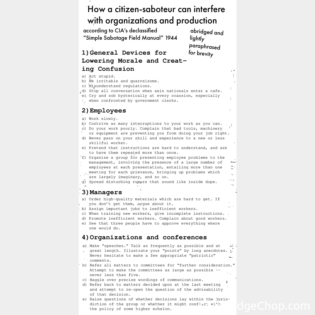 1944 CIA guide for [non-destructive, harmful or dangerous] citizen sabotage of organizations (educational and entertaining)