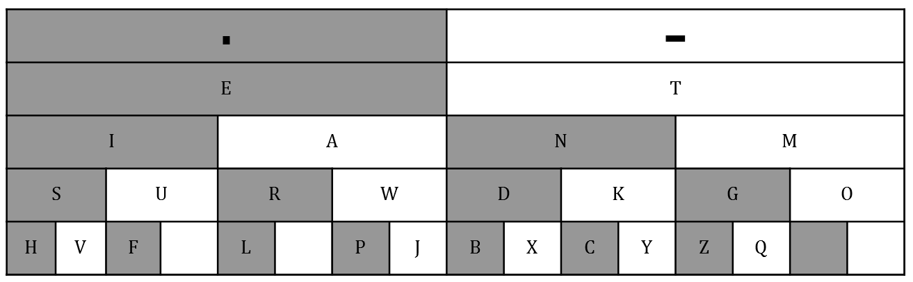 A guide for reading morse code. Start from the top, if it s a dot you move to the left, if it s a dash move to the right