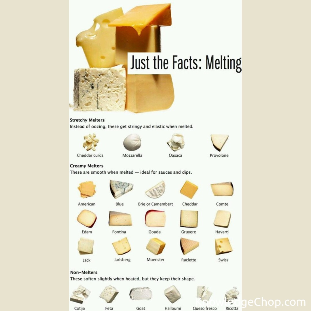 Check out this guide to how different cheeses melt! #Cheese #Dairy #Milk #Hard #Cheddar #Triangle #Vector #Design #Food #Facts #Old #Isolated #Collection #Paper #Disjunct #Business #Set #Kind #NoPerson #Illustration