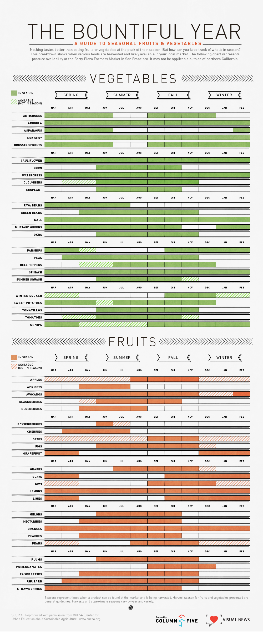 Home/Cool Guides/A Guide to Seasonal Fruits Vegetables📊 Cool GuidesA Guide to Seasonal Fruits VegetablesMay 29, 2020•1 min read Click for More Info Found this guide helpful? 🥷Share on XAll Cool GuidesHome📊More Cool GuidesKeep exploring and learningI ve been trying to add protein to my diet with vegetables and fruits, found this cool guideRead →Why you should eat a rainbow of fruits and vegetables.Read →Peak growing seasons for fruits and vegetables.Read →This cool guide shows taxonomy of fruits and vegetablesRead →This chart shows peak growing seasons for fruits and vegetables in the United States. Some may be longer or shorter depending on your region.Read →California produces up to 80% of the fruit and vegetables in the U.S. and up to 20% of its meat and dairy. Half of California s water use goes to animal agriculture.Read →Explore All Cool Guides