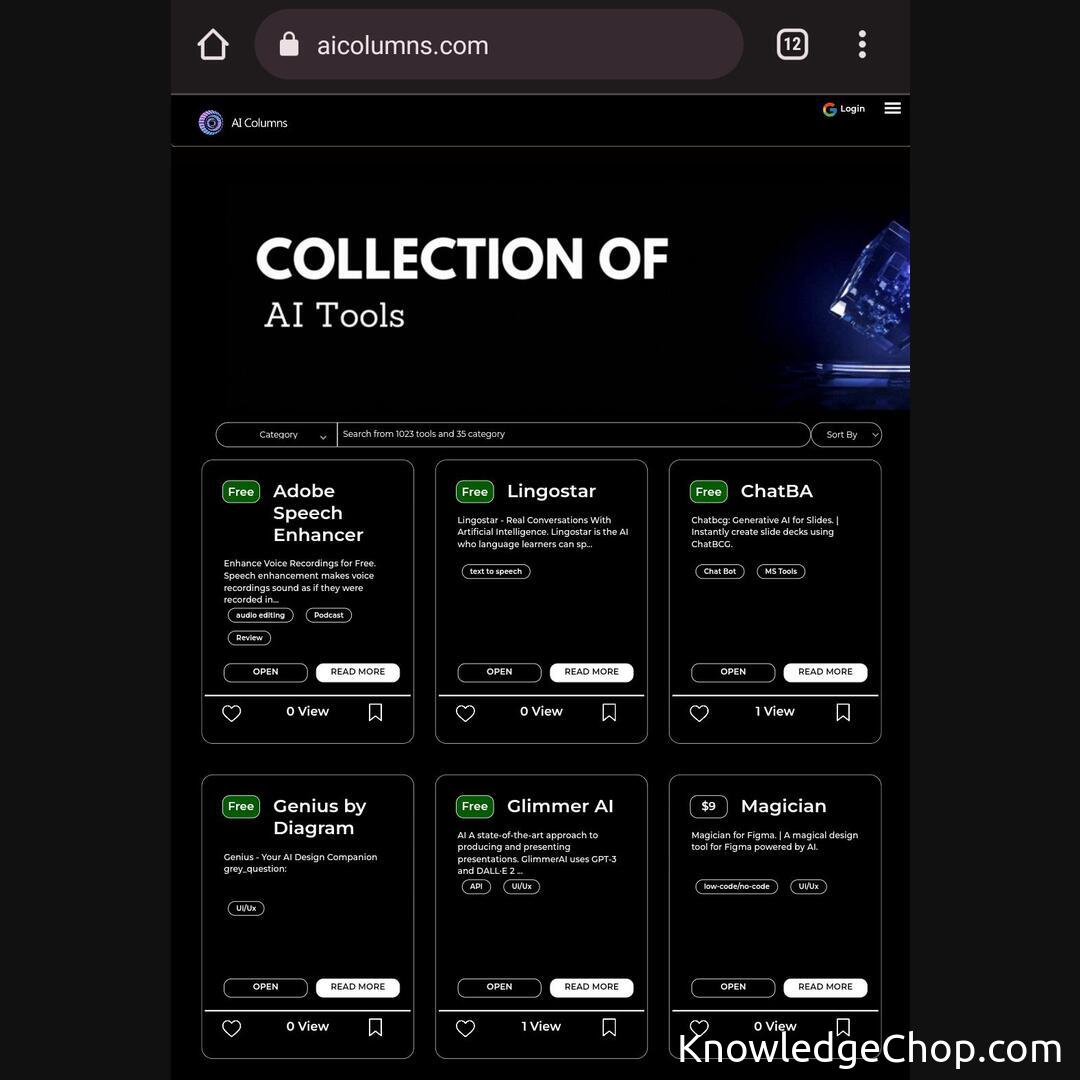 AI Website Collection: Over 1,000 AI Tools in 35+ Categories aicolumns.com