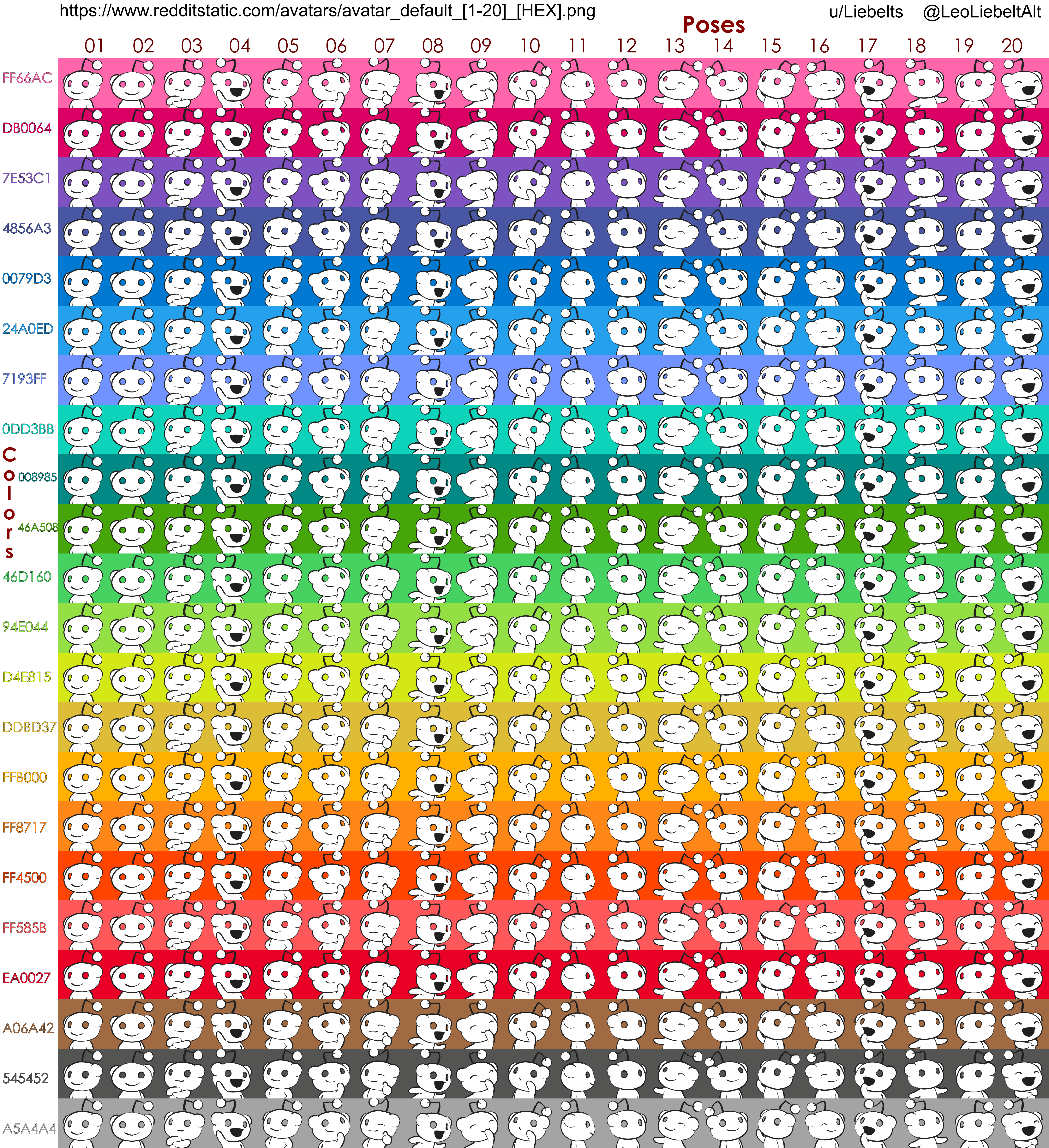 Home/Cool Guides/All of reddit s default profile pics, in...📊 Cool GuidesAll of reddit s default profile pics, in 1:1.Apr 12, 2020•1 min read Click for More Info Found this guide helpful? 🥷Share on XAll Cool GuidesHome📊More Cool GuidesKeep exploring and learningIf you re facing lags in Android reddit app, go to settings and switch Default view option from Cards to ClassicRead →Cracking the Reddit Code: A Ninja s Guide to Mastering the Front Page of the Internet 🕵️♂️🌐Read →Untangling the Reddit Jungle: A Ninja s Acronym Guide 🌐🥷Read →Unmasking the Secrets of Reddit Formatting: A Ninja s Guide to Text Mastery 🥷Read →Unmasking the Secrets of Reddit Formatting: A Ninja s Guide to Text Mastery 🥷Read →Frequency of pejorative compounds in RedditRead →Explore All Cool Guides