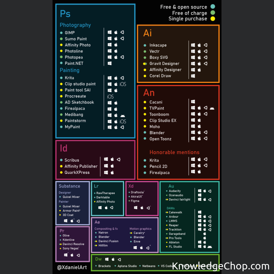 Alternatives to Adobe products on Linux, macOS and Windows.