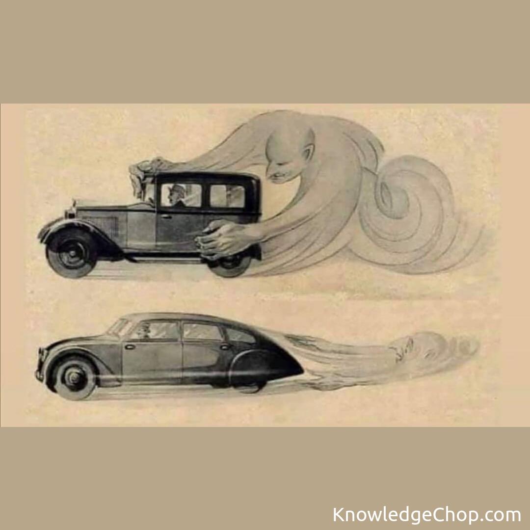 An advertisement from 1930 showing the advanced aerodynamic engineering of new cars