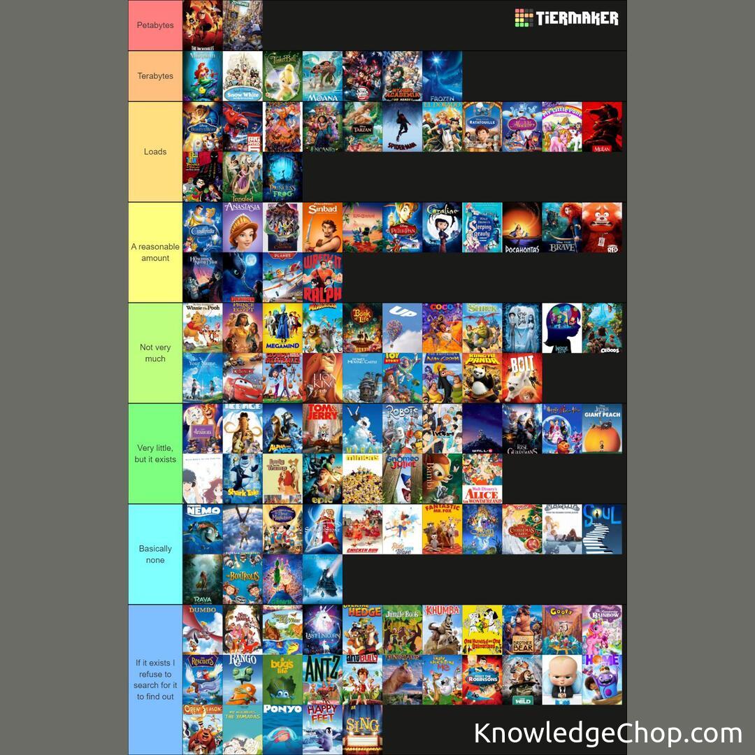 Animated movie tier list, ranked based on how much rule 34 there is of it