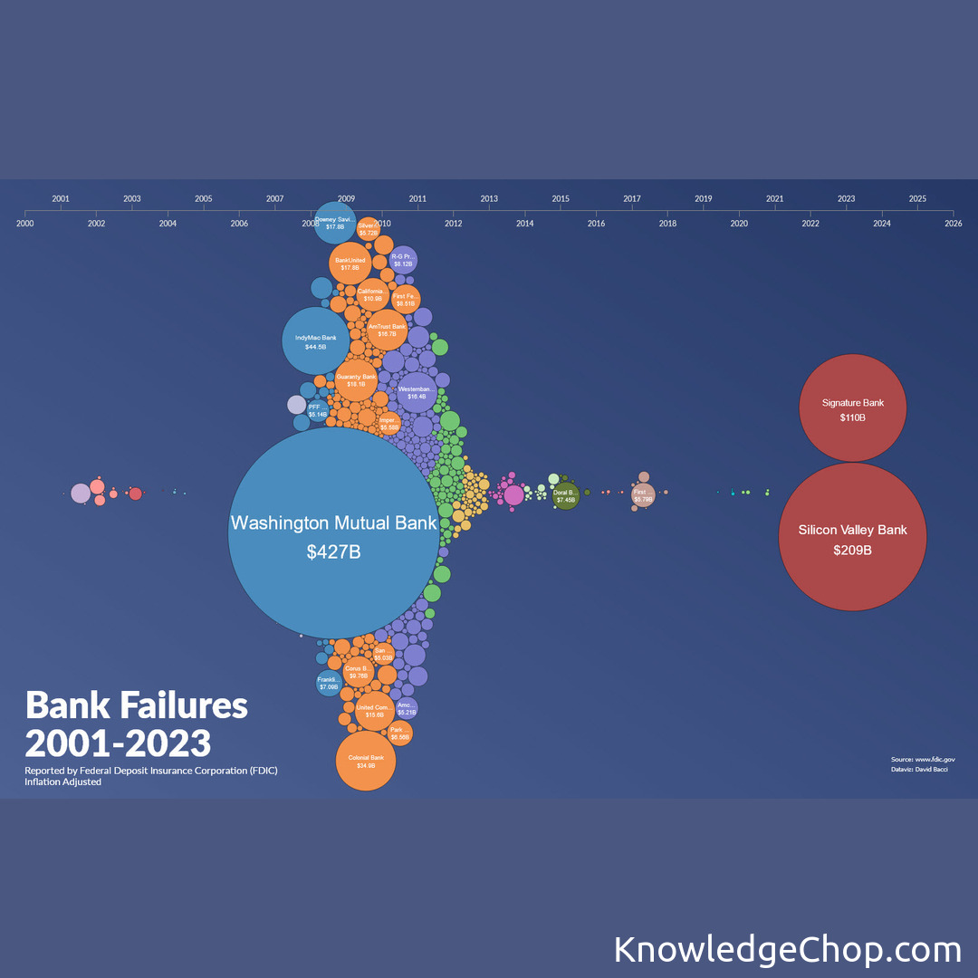 Check out this amazing data visualization of bank failures from 2001-2023, adjusted for inflation! #Facts #NoPerson #Spherical #Data #Internet #Business #Sky #GraphicDesign #Nature #Bright #Designing #Moon #Connection #Flat #Teamwork #Contemporary #BallShaped #Unity #Progress #Conceptual