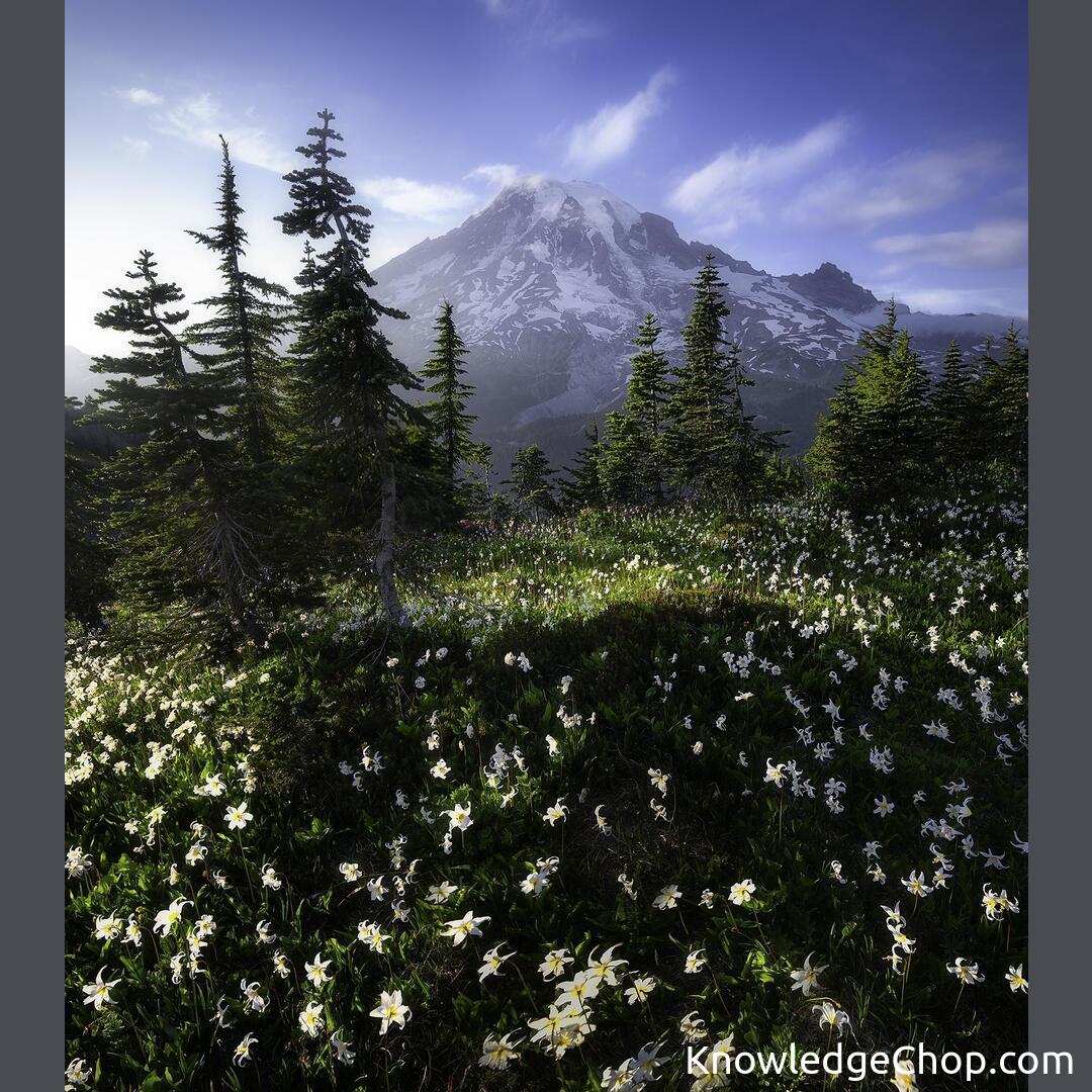 Beautiful avalanche lilies with a great view of Mount Rainier, Washington [OC][1588×1800]