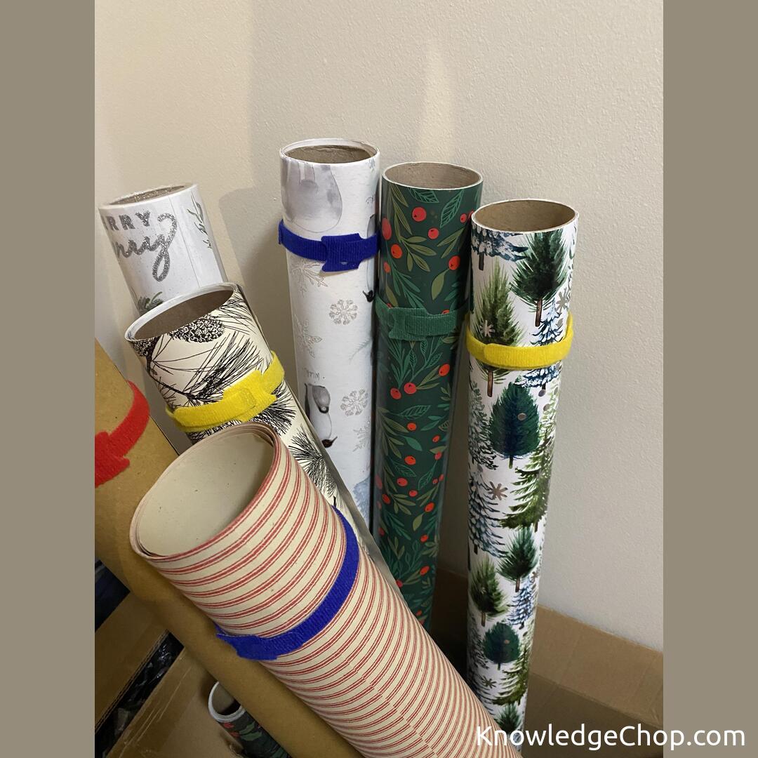Cable organizer straps make a great system for keeping wrapping paper together!