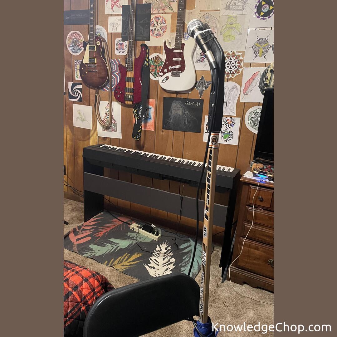 Can’t find a stand for your mic? Use a Hockey stick instead.