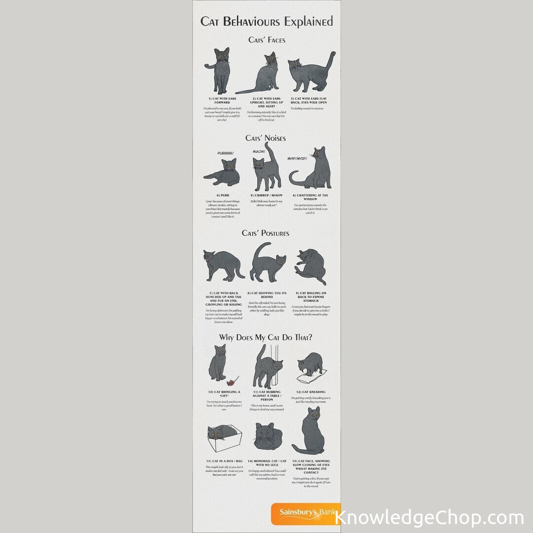 Check out this cool Cat Body Language Chart! #NoPerson #Illustration #Mammal #One #Text #Group #Retro #Set #Two #People #Print #Dog #Art #Stripe #Lithograph #Paper #Canine