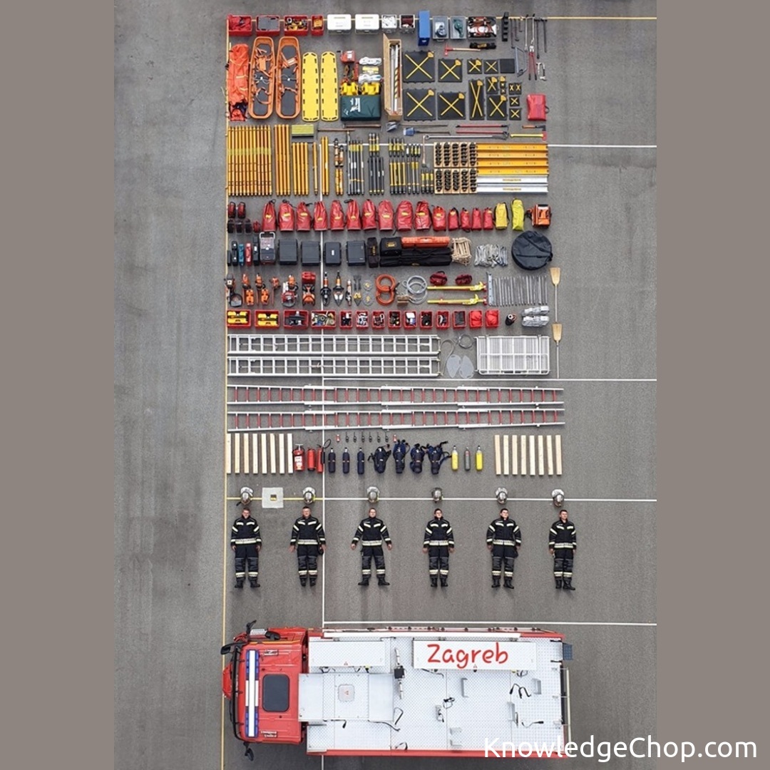 Check out the contents of a single fire truck! From street to travel, city to urban, this truck has it all. #Street #Travel #City #Urban #People #NoPerson #Police #Business #Vehicle #Security #Car #Building #Signalise #Commerce #Soccer #Color #Competition #Architecture