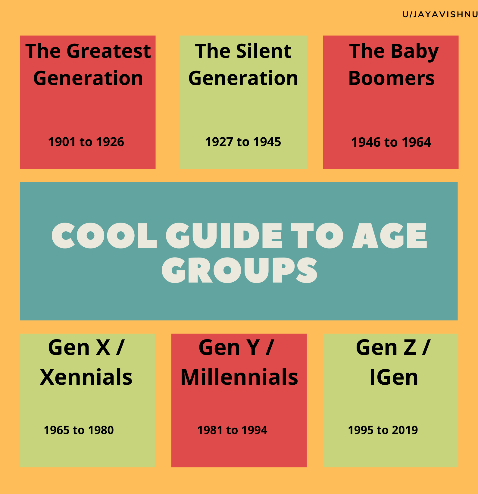 Home/Cool Guides/Cool Guide to Different Age Groups [OC]๐ Cool GuidesCool Guide to Different Age Groups [OC]Nov 11, 2019โข1 min read Click for More Info Found this guide helpful? ๐ฅทShare on XAll Cool GuidesHome๐More Cool GuidesKeep exploring and learningUnmasking the Minimum Wage: Age Groups in the ShadowsRead โcool illustration of different parts of the bicycleRead โhow to cool it V/s your ageRead โA cool guide that covers the core beliefs of major faith groups on earth.Read โCool guide to different rice dishes!Read โChart of different peppers on the Scoville Scale. Iโm not sure if this has been posted before but I thought it was coolRead โExplore All Cool Guides