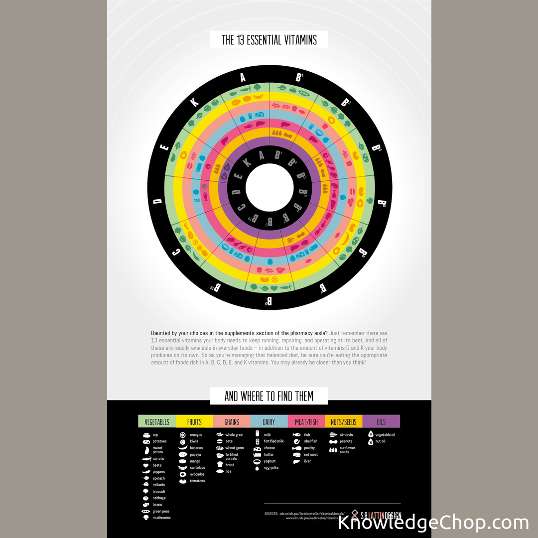 Cool guide to show you sources of all the essential vitamins