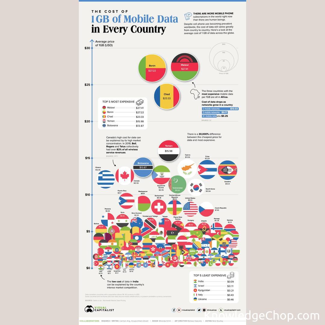 Cost of 1GB of Mobile Data Worldwide (Visual Capitalist)