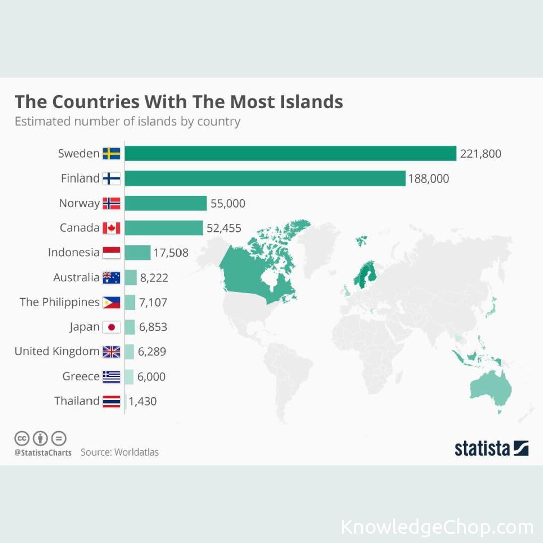 Countries in the world with the most islands