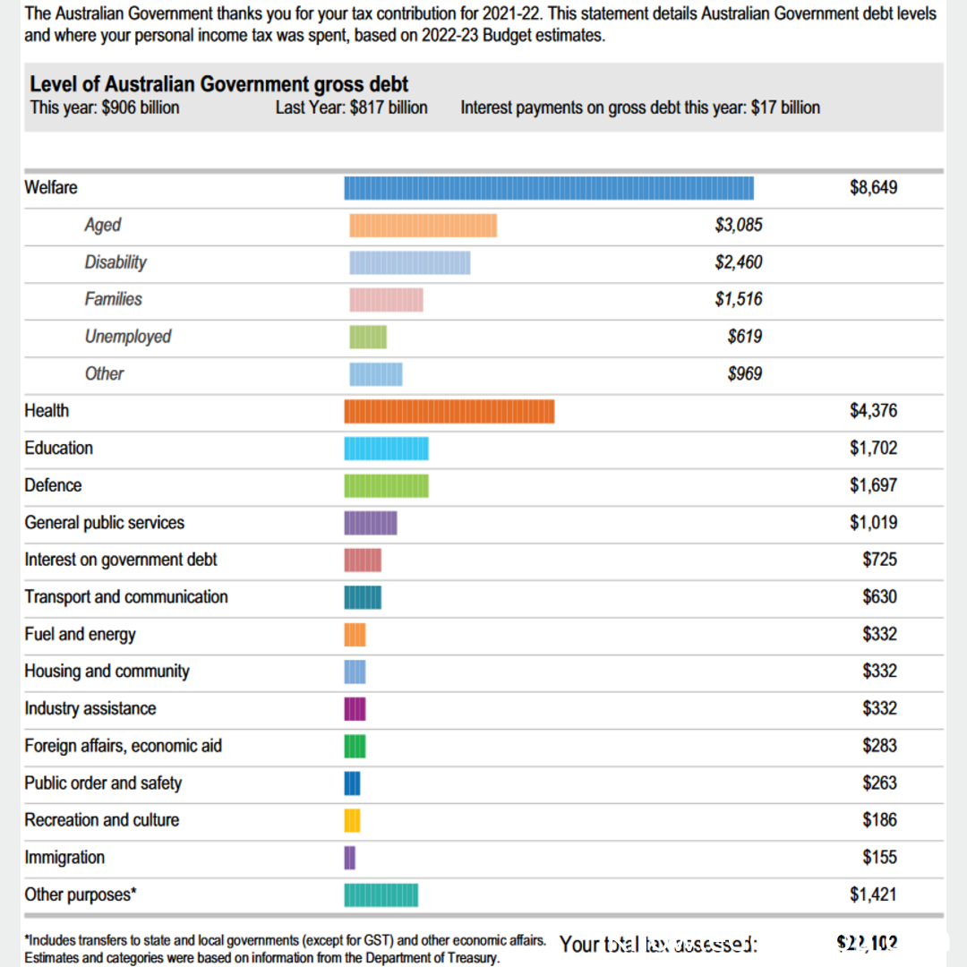 Each year the Australian Taxation Office (ATO) provide a personalized infographic showing where your tax dollars are spent