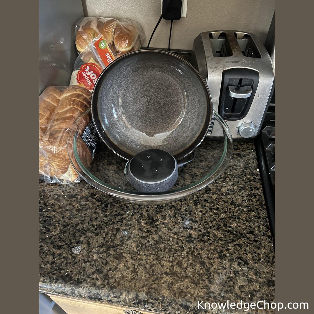 Echo Dot with a shitty speaker, plus two heavy bowls of slightly different size, equals a much less shitty sounding speaker.