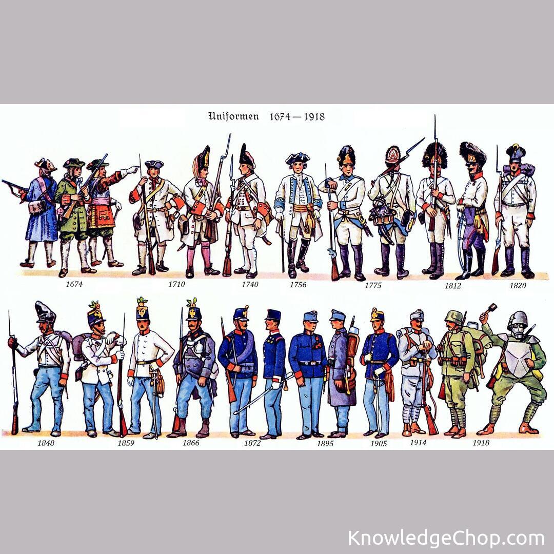 Evolution of uniforms of Austro-Hungarian (Habsburg) army from 1674 to end of empire in 1918