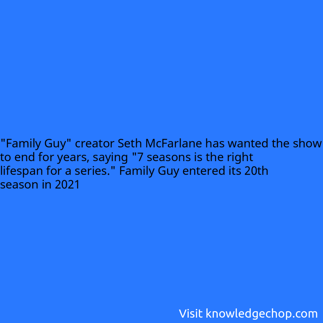 “Family Guy” creator Seth McFarlane has wanted the show to end for years, saying “7 seasons is the right lifespan for a series.” Family Guy entered its 20th season in 2021