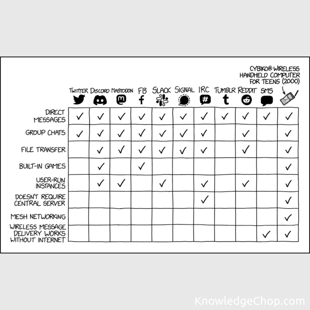 Feature Comparison of Social Media (incl. Reddit) – Credit to XKCD