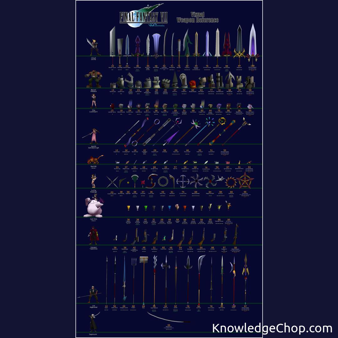 Celebrating 26 years of Final Fantasy VII! Check out this awesome high-definition weapon reference pic! #FinalFantasyVII #Anniversary #WeaponReference #Art #Vector #People #Gold #Abstract #Illustration #Travel #Desktop #Color #Light #Technology #Winter #Symbol #Moon #Group #Repetition #Business #Many #Science