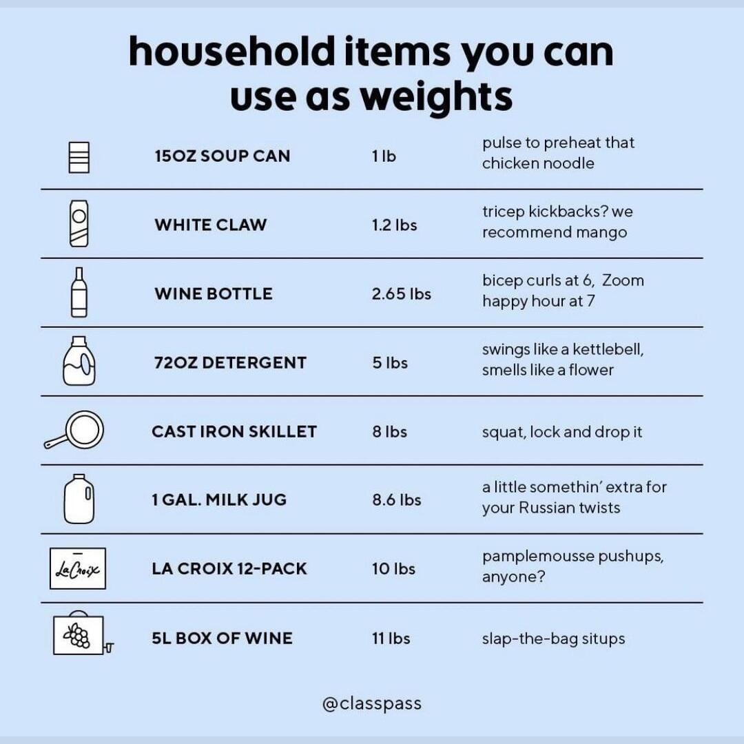 Home/Cool Guides/Household Items You Can Use as Weightsπ Cool GuidesHousehold Items You Can Use as WeightsFeb 3, 2021β’1 min readFound this guide helpful? π₯·Share on XAll Cool GuidesHomeπMore Cool GuidesKeep exploring and learningGuide to Recycling and Reusing 20 different household itemsRead βGuide to Recycling and Reusing 20 different household itemsRead βExtra uses for common household itemsRead βBirb s guide to household itemsRead βReuse these common household items as vessels to start your seeds indoorsRead βIncrease your house security just by increasing the length of the screws you use in the Main DoorRead βExplore All Cool Guides