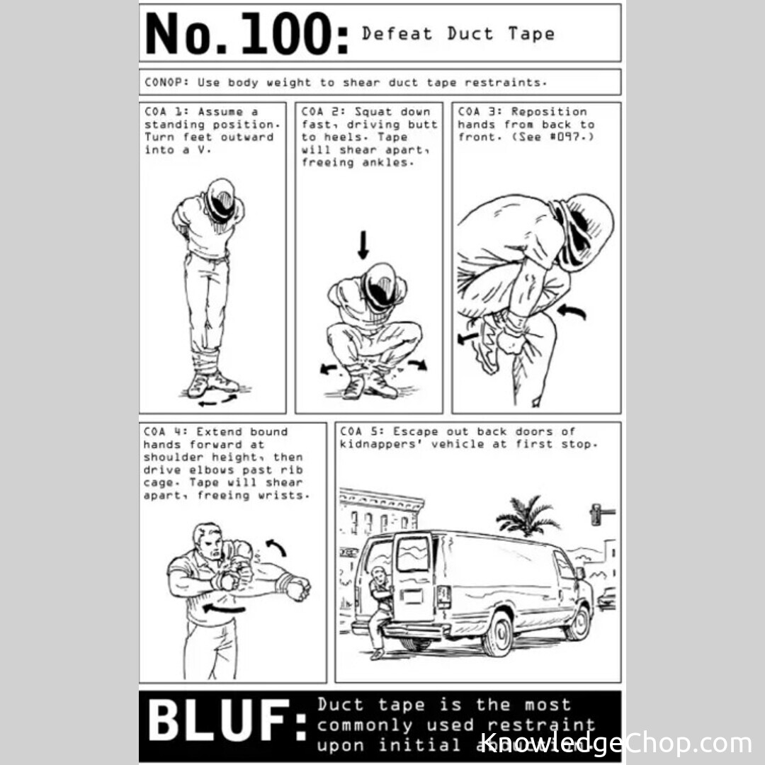 Home/Cool Guides/How to escape a duct tape abduction📊 Cool GuidesHow to escape a duct tape abductionNov 22, 2022•1 min read How to escape a duct tape abduction Found this guide helpful? 🥷Share on XAll Cool GuidesHome📊More Cool GuidesKeep exploring and learningHow to escape a duct tape abductionRead →How to escape a duct tape abductionRead →How to escape a duct tape abductionRead →Never be without duct tape again! Wrap some around an old plastic card and keep in your walletRead →Protect your extension cords against the garage door this Christmas. 1 pencil + duct tapeRead →DOUBLE YOUR DUCT TAPE- Duct tape is comprised of a lattice work of threat held together by a layer of adhesive. Because of this you can tear your roll of duct tape down the middle and the tape will tear evenly Right at the threat where you split it for the whole roll of tape.Read →Explore All Cool Guides