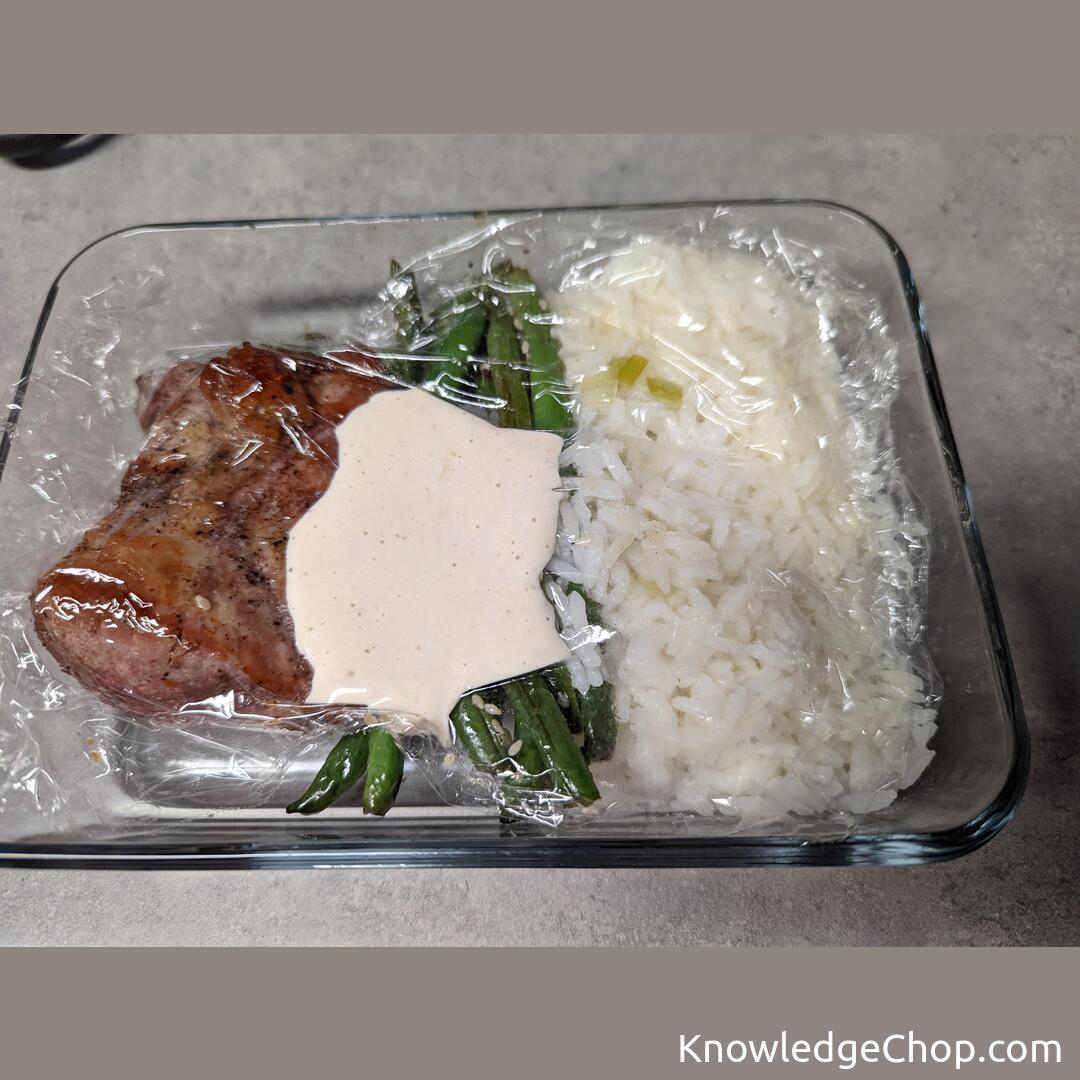 How to handle the sauce for leftovers or meal prep. Place some plastic wrap over your dish and then make a well to pour the sauce in. Plastic wrap keeps frost from forming on top of the food in the freezer and lets you take the sauce out to heat up the rest of the meal without cooking the sauce.