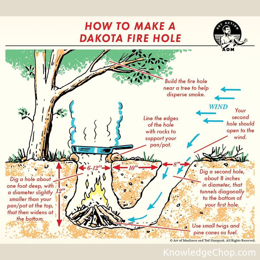 Check out this awesome illustration of how to make a Dakota fire hole! #illustration #map #desktop #vector #country #old #text #travel #vintage #soil #design #margin #tree #card #ball-shaped #retro