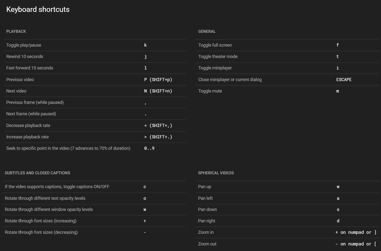 i was watching a video and accidentally pressed * and this popped up. heres a list of shortcuts for youtube