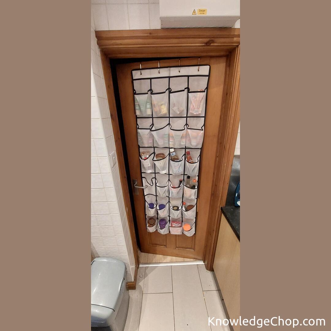If you live somewhere where space is a commodity, grab yourself some over door shoe organisers. Pictured is an example from that helps me save space in my tiny kitchen by using it for spices, sauces, etc. and freeing up cupboard space! I do the same in my even smaller bathroom for toiletries.