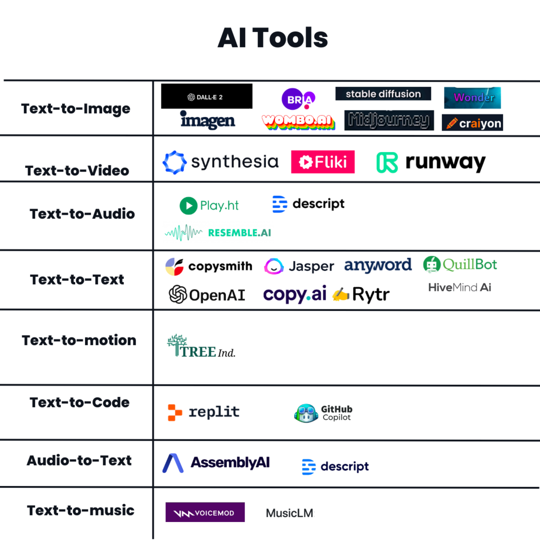 I m trying to create a comprehensive table of the best AI tools use- feel free to give some recs so I can add it to the list