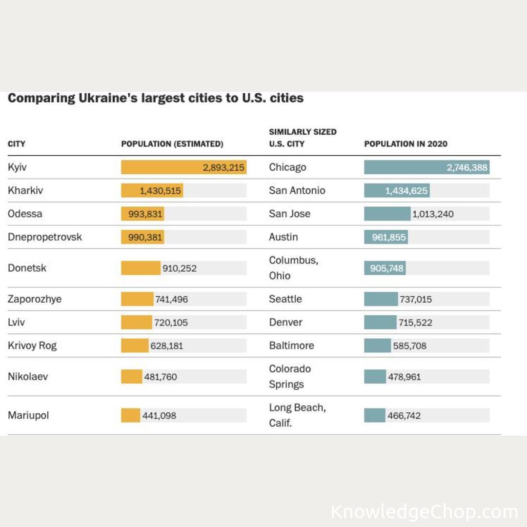 In case you re under the impression that Ukraine s a small country with modest-sized cities, here s a helpful graphic that shows the relative size of the Ukrainian cities that Putin is actively destroying. (Source in comments)