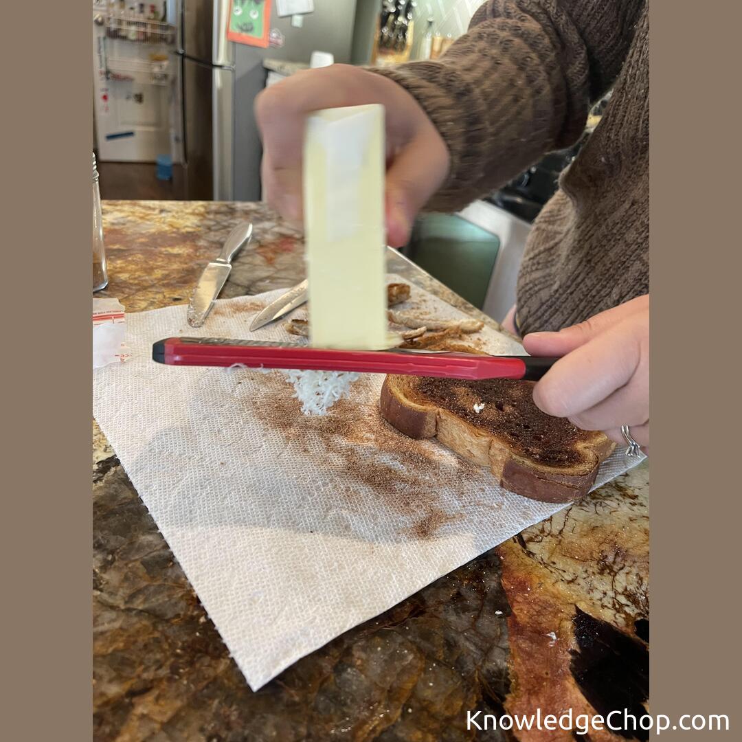 I’ve been married to my wife for 11 years and she just taught me that if I use a cheese grater on a cold stick of butter, it’s easier to spread on toast and muffins.
