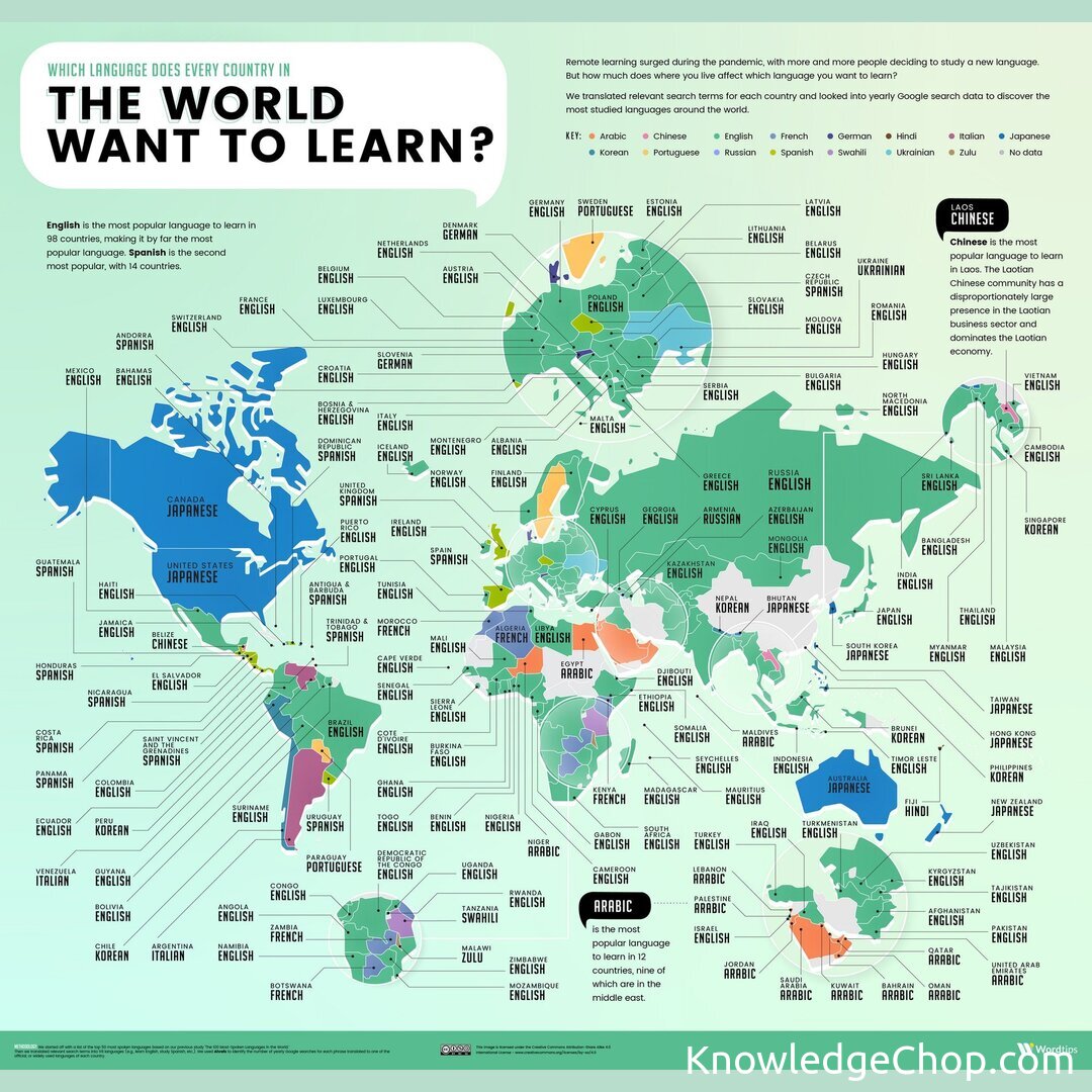 Whether you’re a novice language learner or a seasoned linguistic warrior, this intricately-designed illustration of each nation’s language objectives boasts a layout that will both enlighten and entertain. So, fellow language ninjas, embrace your intellectual arsenal and explore the full-resolution map at knowledgechop.com now!