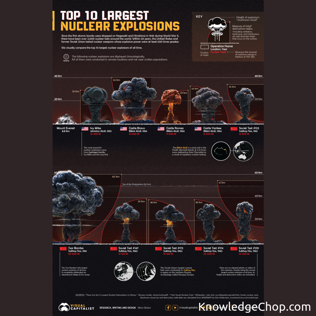 Home/Cool Guides/Largest nuclear explosions๐ Cool GuidesLargest nuclear explosionsMay 17, 2022โข1 min read Largest nuclear explosions Found this guide helpful? ๐ฅทShare on XAll Cool GuidesHome๐More Cool GuidesKeep exploring and learning10 Largest Nuclear ExplosionsRead โThis visually compares some nuclear explosions in historyRead โGuide for nuclear explosion. ๐ฅRead โNuclear Bombs Explosion SizeRead โAnother guide for what to do in the event of a nuclear explosionRead โEvery nuclear explosion from 1945-1998Read โExplore All Cool Guides