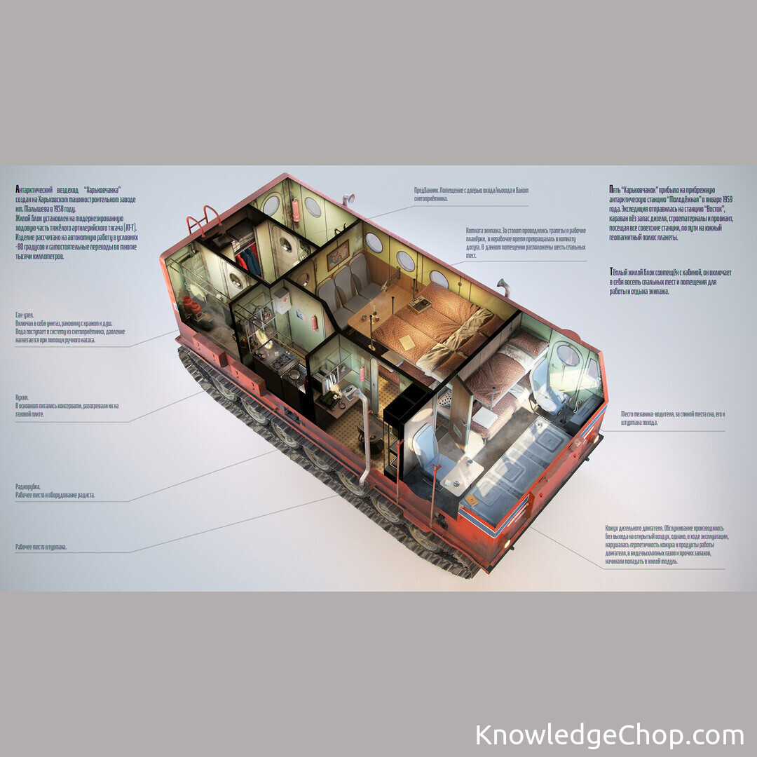 Layout of the Kharkovchanka, a 1950’s Soviet off-road vehicle used in Antarctic expeditions