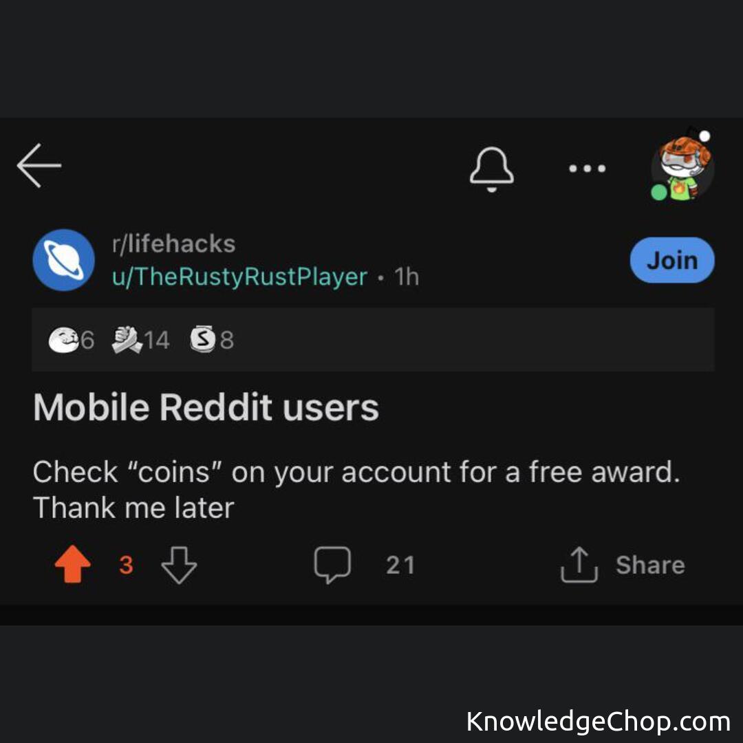 Life hack! Make a post directing mobile Reddit users to where they can find free awards so that you get tons of fake validation!