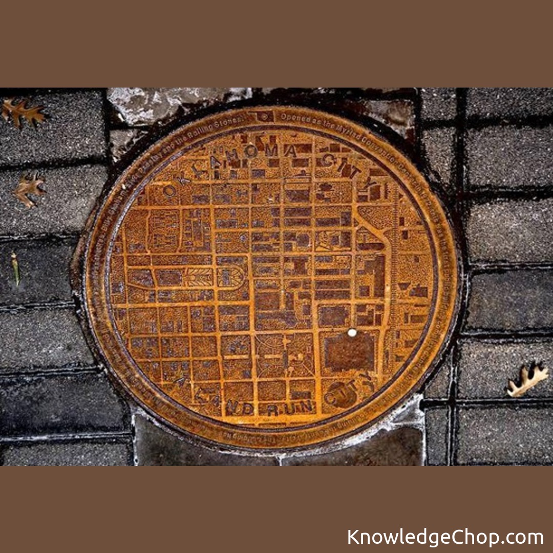 Manhole covers in Oklahoma have a city map on them with a white dot showing where you are.