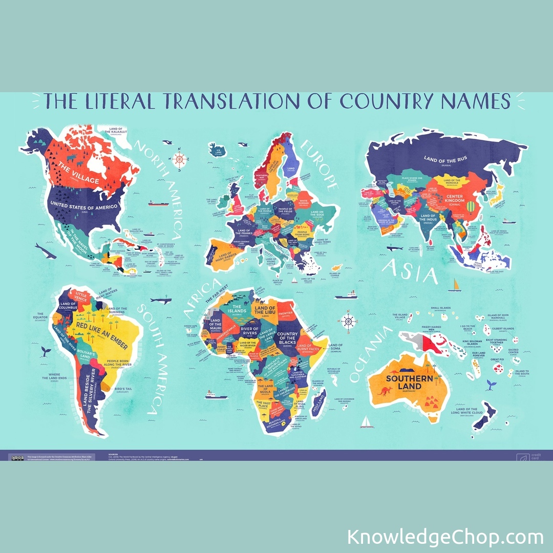 Check out this amazing map of the world with country names literally translated! #Map #Geography #Cartography #Atlas #BallShaped #Illustration #Continent #Country #Travel #Universe #Symbol #Soil #Graph #Outline #Margin #Vector #Spherical #Design #Planet #Image