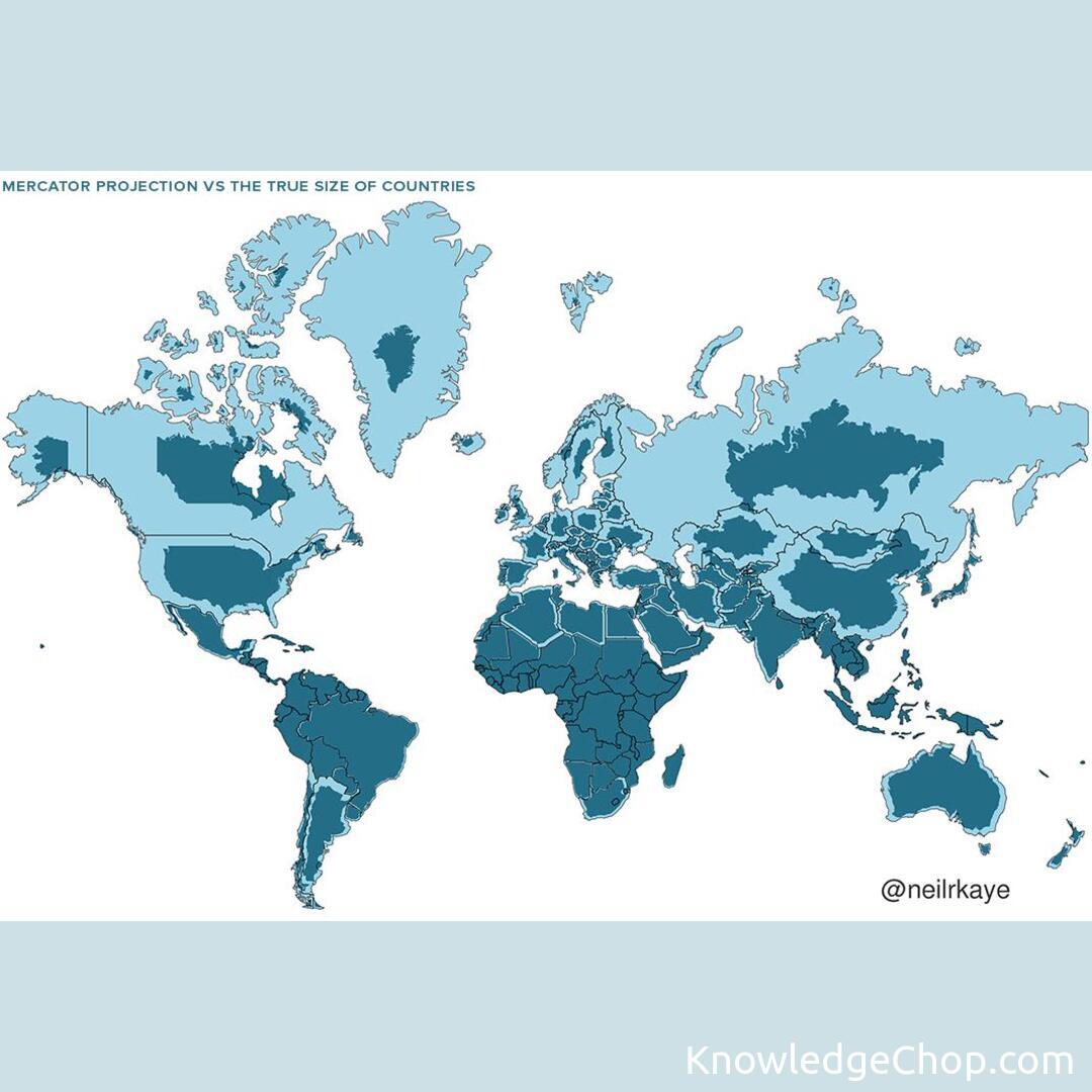 Mercator projection vs the true size of Countries.
