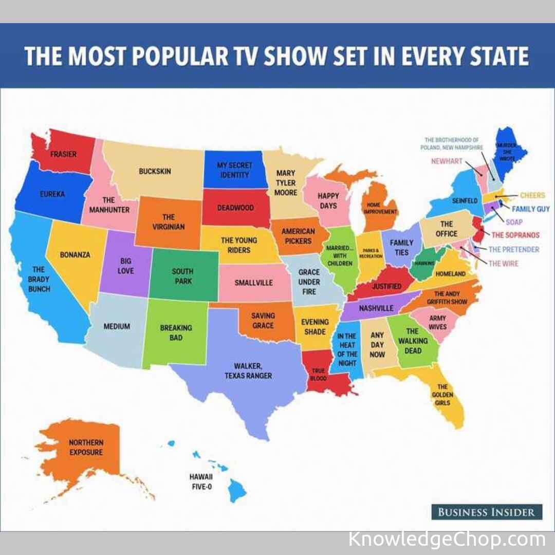 Check out this awesome graph of the most popular TV shows set in each state! From #Facts to #Presentation, this #Map has it all. #Layout #Navigation #Template #WWW #Diagram #Information #Business #Page #Cartography #Geography #WrittenReport #Stripe #Vectors #Banner #Designing #Variant