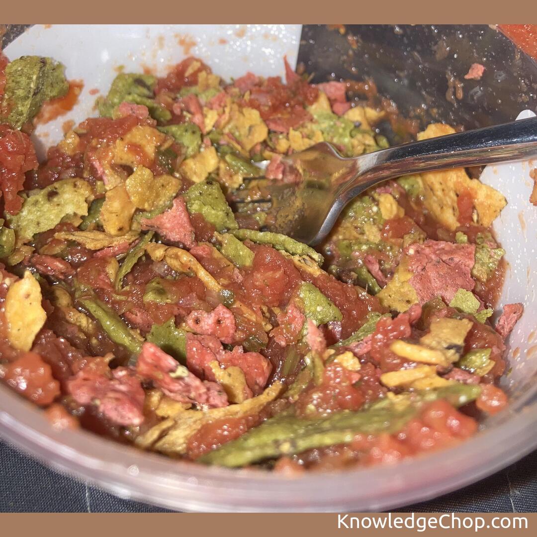 My Mom taught me this when I was younger: if you have dip or salsa and your chips get down to crumbs, dump them in the remainder of your dip/salsa and eat them with a fork.