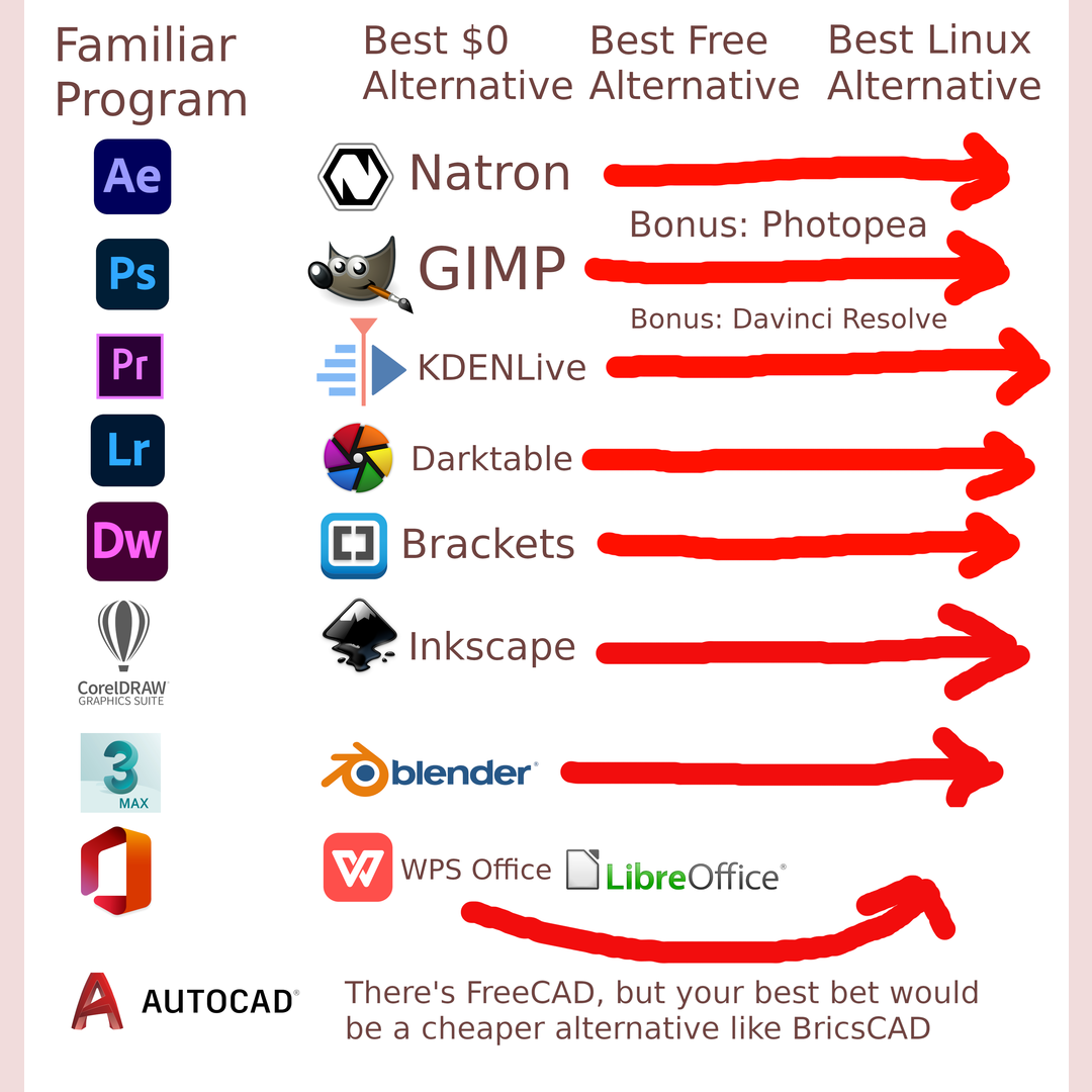 My personal (somewhat messy) take on the Alternative Free Software guide