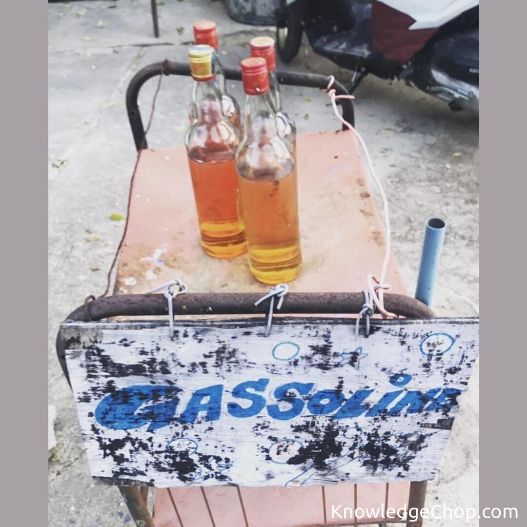 Need To Fill Up? Road Side Shacks or Stores Sell Petrol Out Of Empty Liquor Bottles! Couldn’t Resist Taking This Photo!