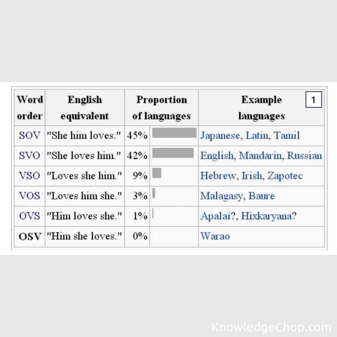 % of languages that have same order of words