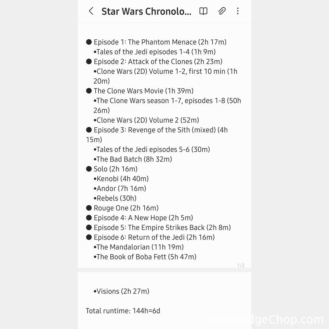 OP made a playlist of Star Wars in chronological order for his gf